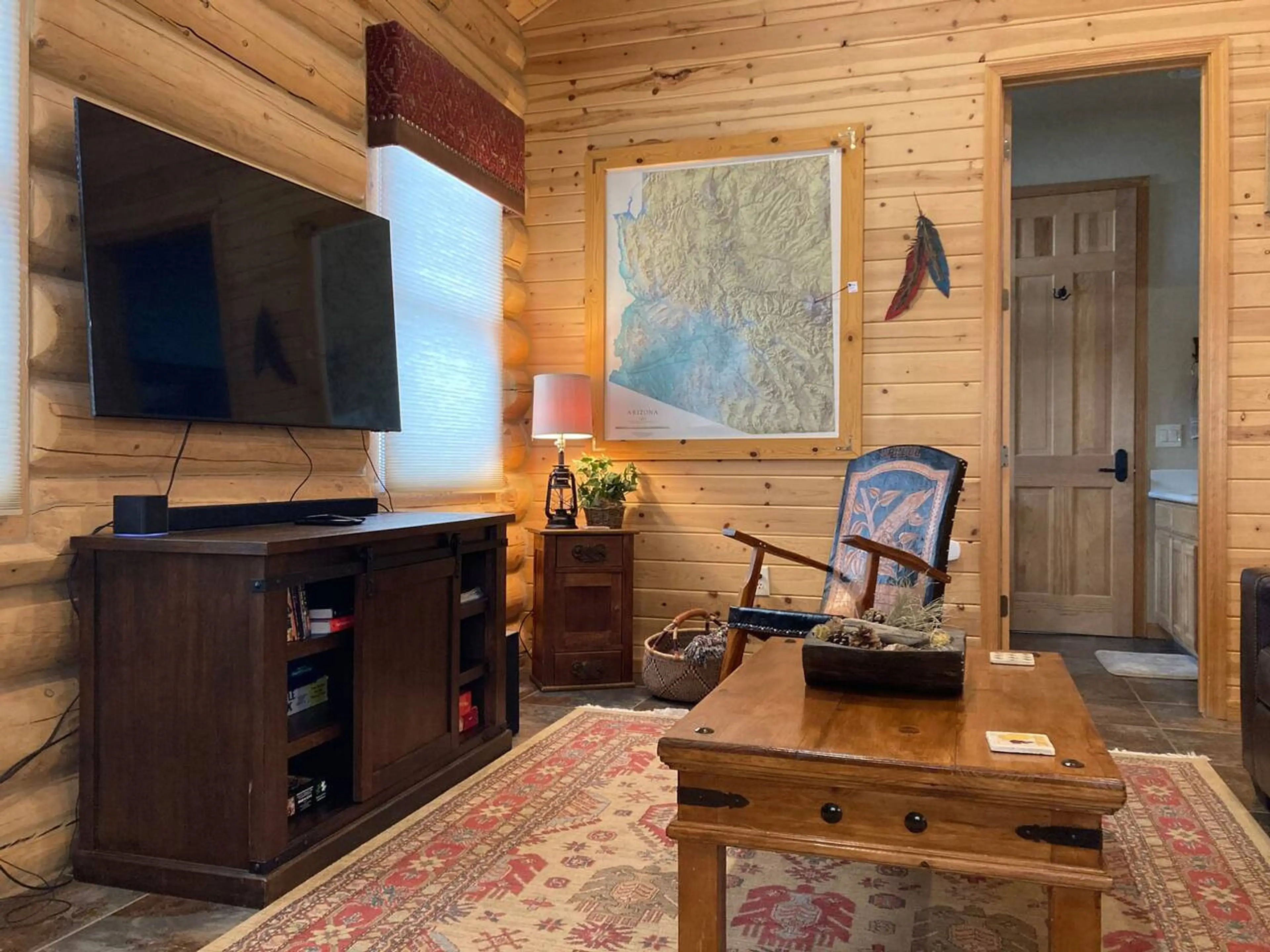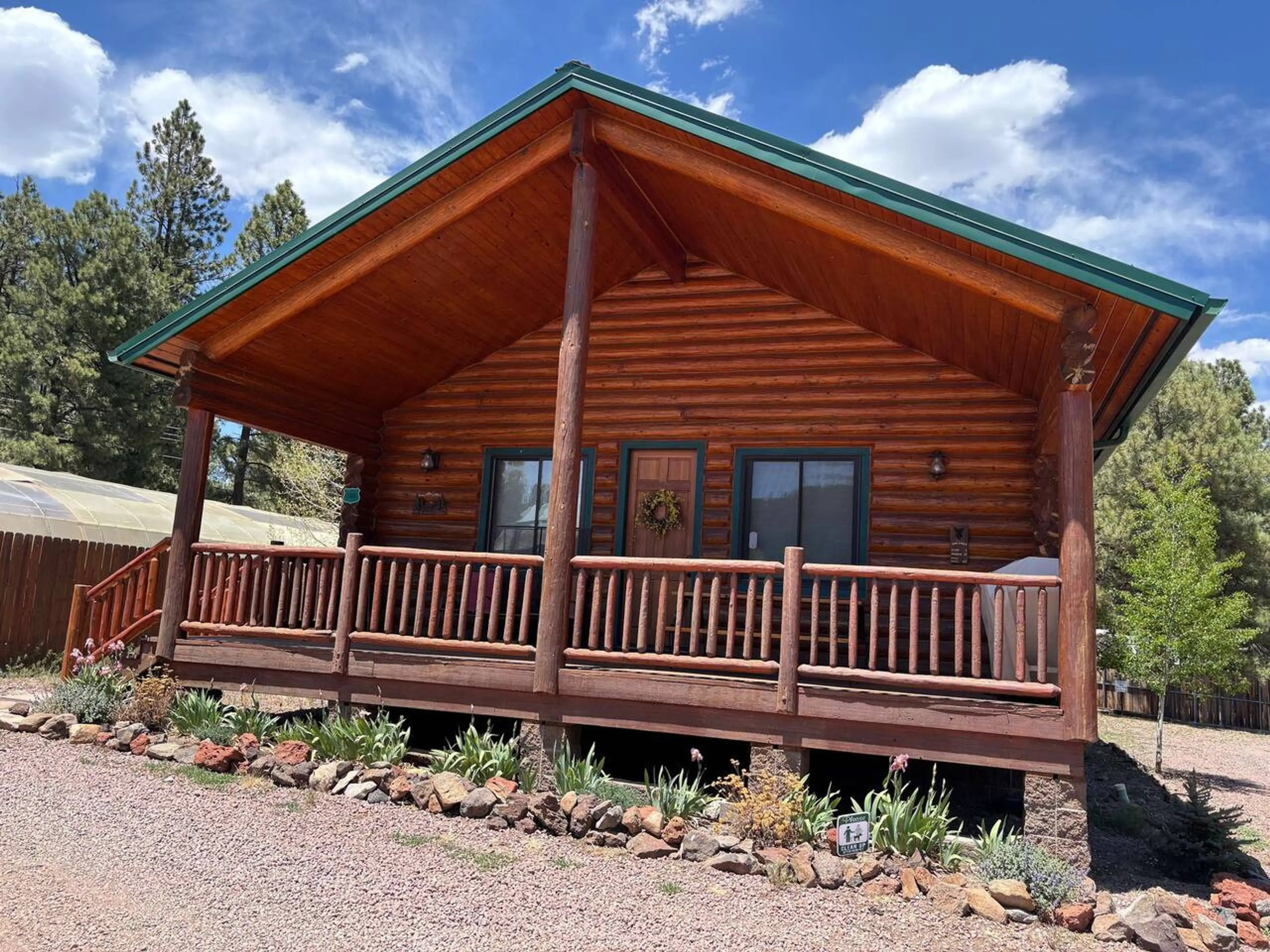 Our hand-hewn log cabin sits on the Little Colorado River above Greer Valley & overlooks privately owned ponds. It's a lovely and convenient hub for adventures in and around Greer and the White Mountains. Convenient location for ALL wedding venues in Greer. Our deck has a gas grill & picnic table w/...